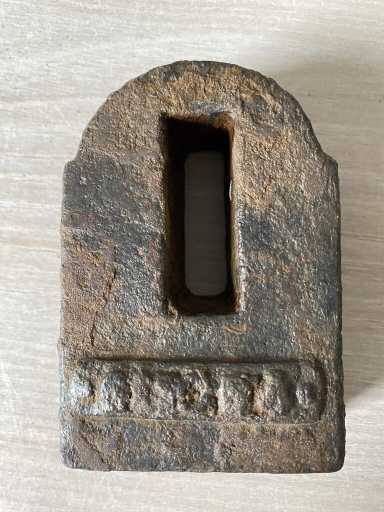 Uit onderzoek op internet kwam ik erachter dat het een gewichtje is van een oude zaaimachine. Dit gewicht werd gebruikt om de zaaipijpen van zaaimachines op diepte te houden. Zo kon men regelen hoe diep het zaad moest vallen.