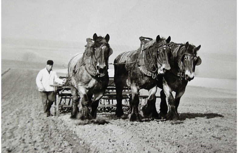 Waar mijn exemplaar vandaan komt is lastig te achterhalen. Ook kan ik nog geen foto vinden waarop staat hoe het contragewicht bevestigd is. Gezien de vele hoefijzers die ik op dit land gevonden heb kan ik mij wel een beeld vormen van hoe vroeger het land geploegd en gezaaid werd.