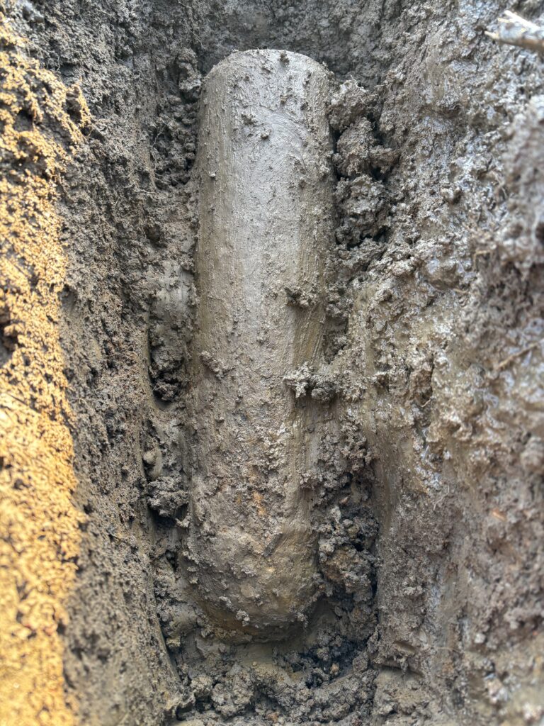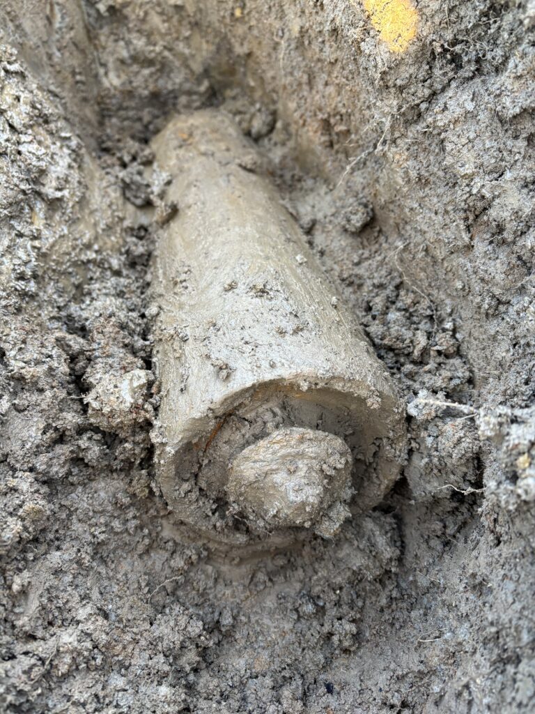 Mijn intuïtie zegt STOP! Het is een granaat of bom. Het moet wel. Ik stuur een appje naar de boer waar het land van is. Ik krijg direct een coole reactie terug. “Zo, dat is nog eens wat anders”. Hij is gewend aan foto’s van muntjes en loden kanonskogels, maar dit… Ik besluit hem te bellen. “Rick, ik denk dat ik een bom gevonden heb. Ik zorg dat hij verwijderd wordt. Kom maar even niet op het land.” “Ok, ik hoor het wel”.