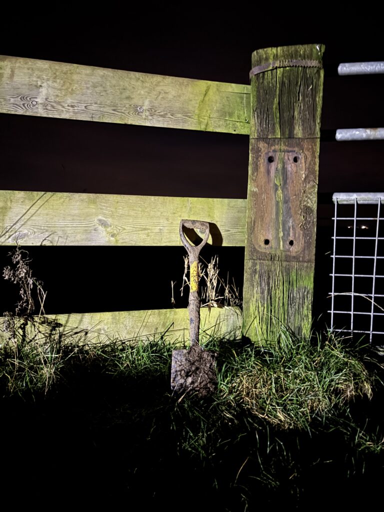 Het protocol schrijft ook voor dat je de plek moet markeren. Hoe dan? Ik besluit mijn schepje achter te laten als een soort baken.