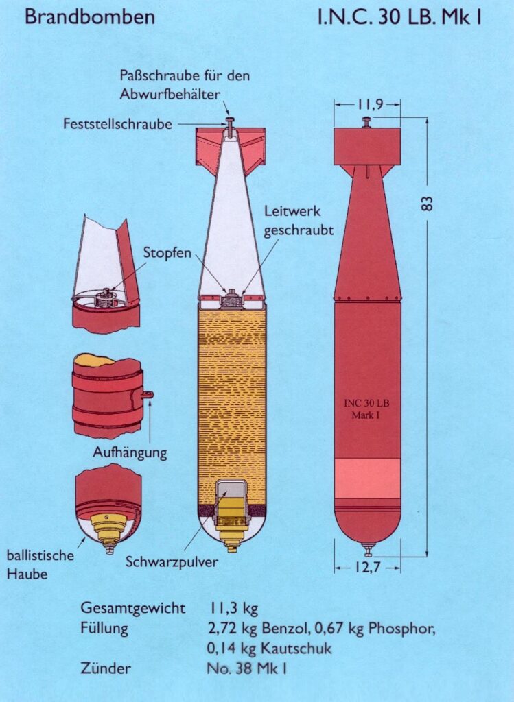 Rubber of een vergelijkbare brandbare gel: Dit werd toegevoegd om de brandende fosfor beter te laten kleven aan oppervlakken, vergelijkbaar met napalm. Dit maakte het moeilijk om branden te blussen en zorgde ervoor dat de bom effectief bleef op gebouwen, voertuigen en zelfs mensen.