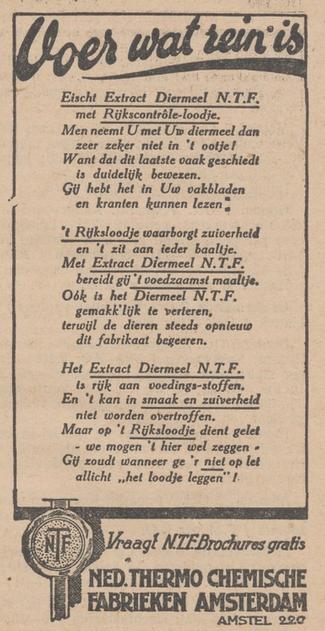 Het blijkt te gaan om een loodje van de Nederlandsche Thermo Chemie Fabrieken. Nooit van gehoord, dus we zoeken verder om meer over dit bedrijf en het loodje te weten te komen.