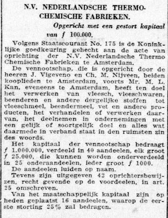 Op 18 februari 1925 richtte José Vigevéno samen met Charles Mozes Nijveen de N.V. Nederlandsche Thermochemische Fabrieken (N.T.F.).