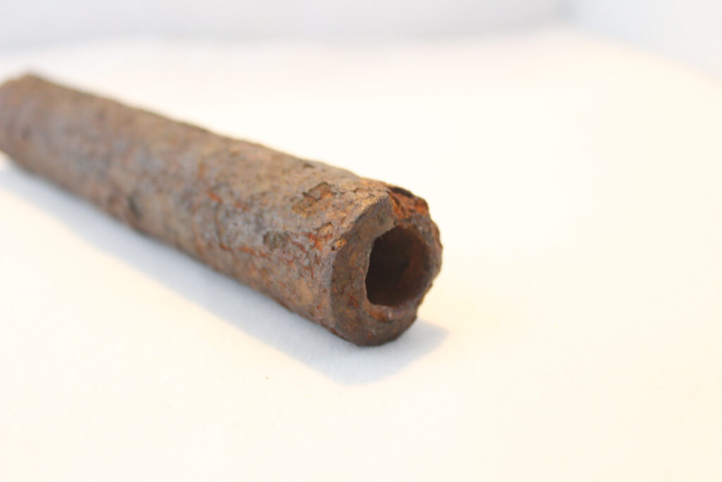 Mijn oudijzerbak zit regelmatig vol met ijzeren pijpen. Niet te veel tijd aan spenderen. Maar dit keer was er toch iets waardoor ik wel mijn best ging doen om de dikke roestkorst eraf te halen. En gelukkig maar. Deze vondst is niet puntgaaf, maar wel gaaf. Het is namelijk een loop. Een loop van een pistool of van een musketgeweer? In deze blog ga ik proberen tot een goede determinatie te komen, waarbij ik weer gebruik zal maken van mijn digitale vriend ChatGPT.